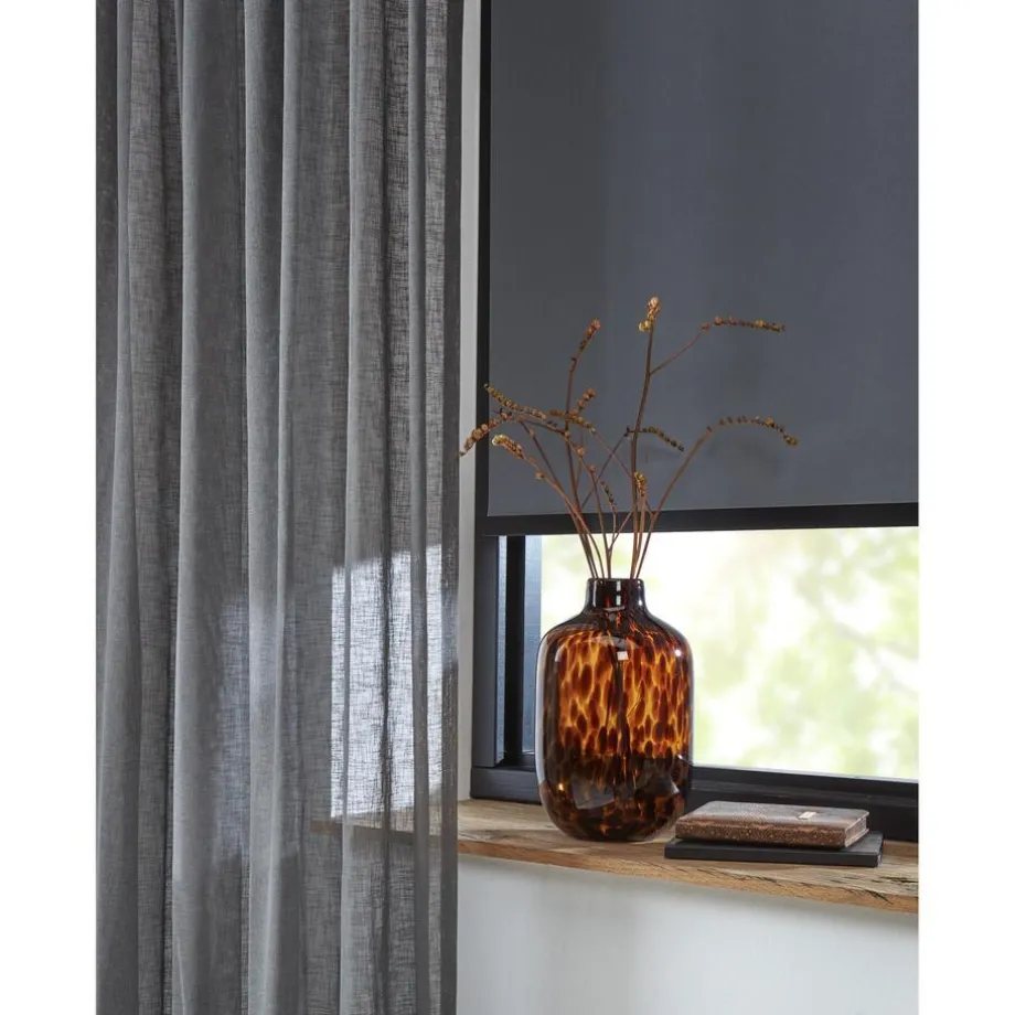 Behoefte aan meer licht maar heb je wel de behoefte aan de nodige privacy? Kies dan voor een inbetween in de woonkamer en combineer deze met een mooi verduisterend overgordijn. Inbetween Joep Antraciet is een transparante gordijnstof van 100% polyester. Deze gordijnstof heeft een soepel vallende, luchtige uitstraling. Zeer sterk en slijtvast. Kreukgevoelig. 300 cm hoog.
