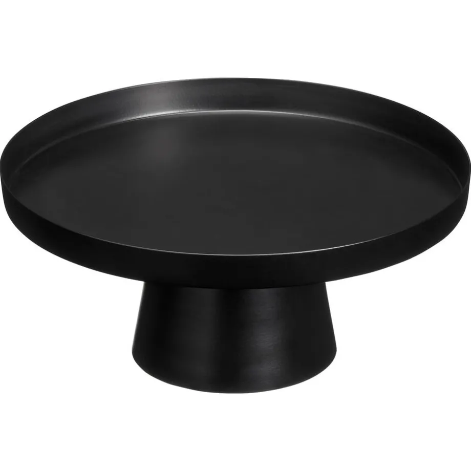 Zwart plateau op voet. Gemaakt van ijzer. Diameter van 30 cm.