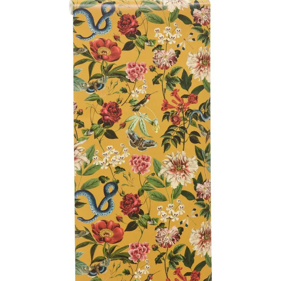 Vliesbehang met fleurige bloemenprint. Voorzien van het FSC-keurmerk. Wand insmeren met Perfax Roll-on. 10 meter per rol. 53 cm breed.