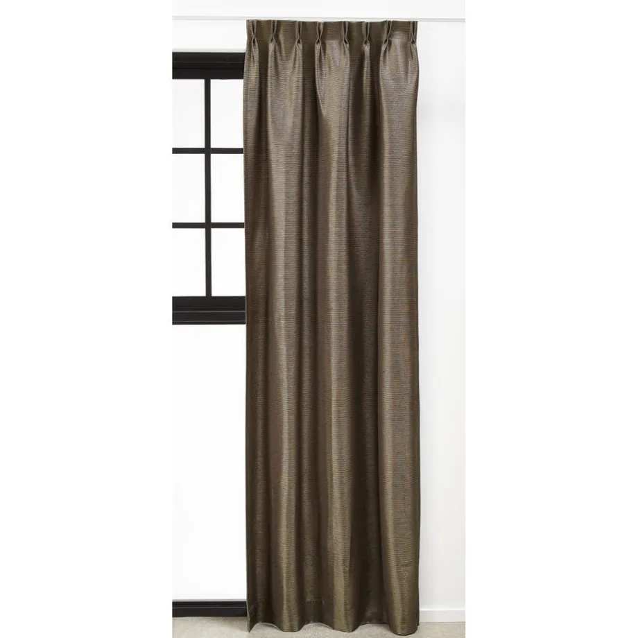 Gordijnstof van luxe materiaal met een zwarte en gouden kleur. Zacht en sterk. 140 cm breed.
