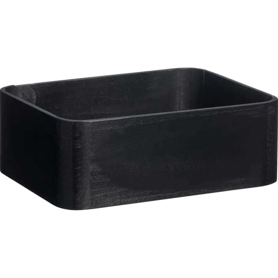 Zwart houten kist. 36,5×26,5×12 cm (lxbxh).
