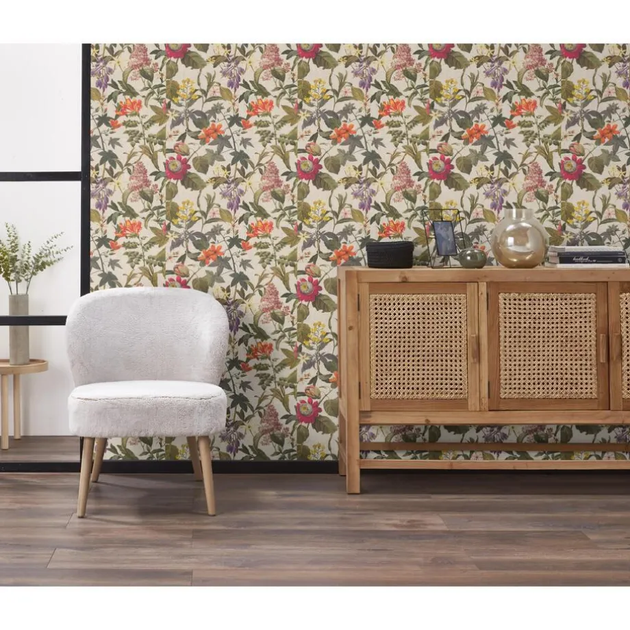 Sfeervol vliesbehang met een bloemenprint. Plakken met Perfax Roll-On.