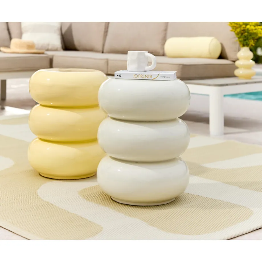 Bijzettafel Ribera in de kleur geel heeft een modern ontwerp dat past bij iedere interieurstijl. Het tafeltje is gemaakt van sterk materiaal en heeft een afmeting van Ø35×43 centimeter. Dit bijzettafeltje kan ook buiten gebruikt worden.
