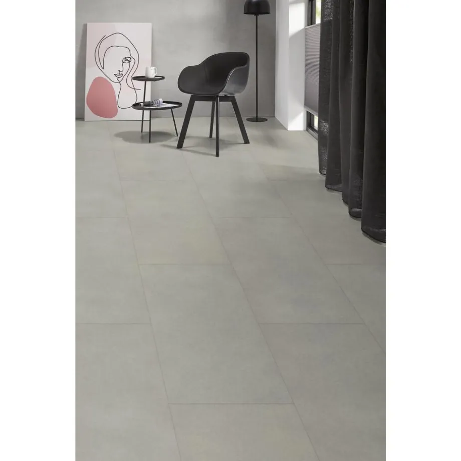 Klik PVC Keystone is een PVC vloer met een grijze tegellook. Zo heeft de vloer de sfeer van een echte tegelvloer, maar het gemak van een PVC vloer. Leg de PVC vloer Keystone in je woonkamer, keuken of bovenverdieping en geniet eindeloos van een ruimte met een chique uitstraling. De grijze kleur geeft een zachte en rustgevende sfeer in je ruimte.