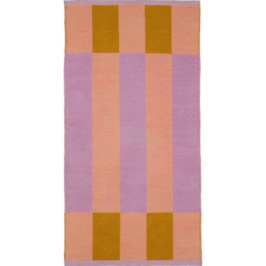 Vloerkleed Koko met een geblokt roze/paars dessin is een trendy vloerkleed die je ruimte direct aankleedt en veel vrolijkheid toevoegt.
