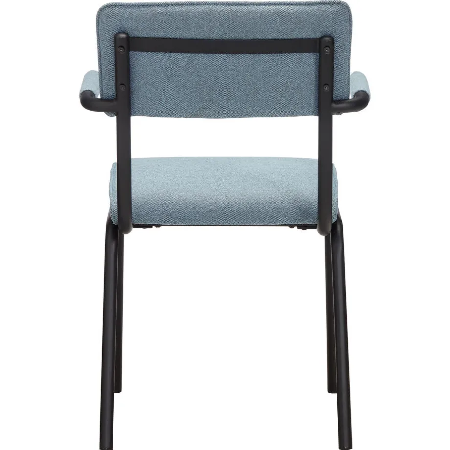 Moderne stoel Zoppola heeft een blauwe kleur, fijne armleuningen en een stevig metalen onderstel. De zithoogte van deze stoel is 48 centimeter en hij heeft een afmeting van 55x53x82 (lxbxh) centimeter. Ook verkrijgbaar in off-white.