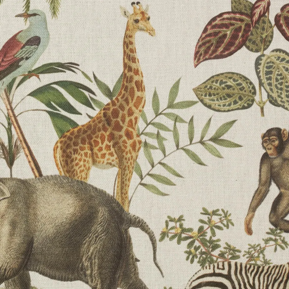 Stof Frank in een off-white kleur. Deze stof heeft een jungle patroon en is gemaakt van 88% katoen en 12% polyester. De patroonhoogte is 64 centimeter.
