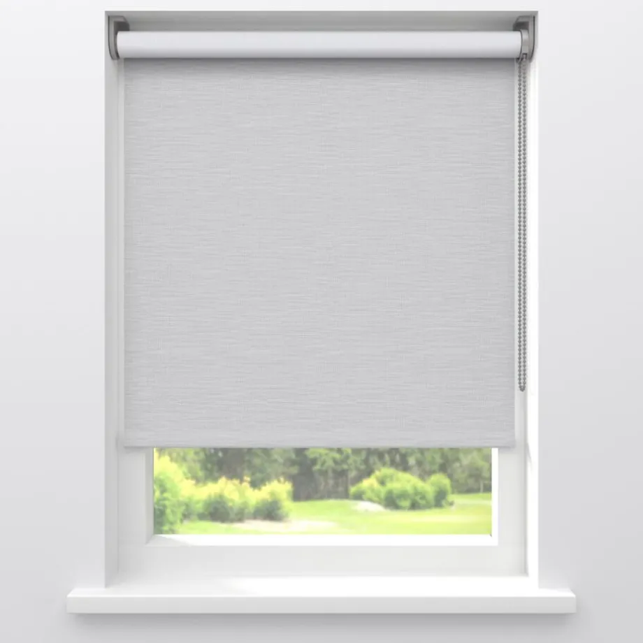 Verduisterend rolgordijn lichtgrijs gemêleerd met structuur. De witte achterzijde zorgt voor volledige verduistering. Ideaal voor slaapkamers maar ook te gebruiken voor keukens en andere woonruimtes. Op maat te maken en volledig naar wens samen te stellen met een ruime keuze uit accessoires en uitvoeringen. Elektrische bediening en zijgeleiding is mogelijk. Ook geschikt voor draaikiepramen. Eenvoudig met een vochtige doek af te nemen.