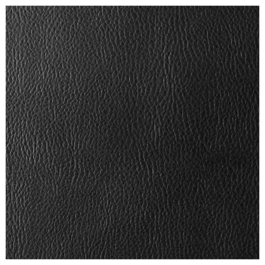 Stof van stevig zwart materiaal met lederlook. 140 cm breed.