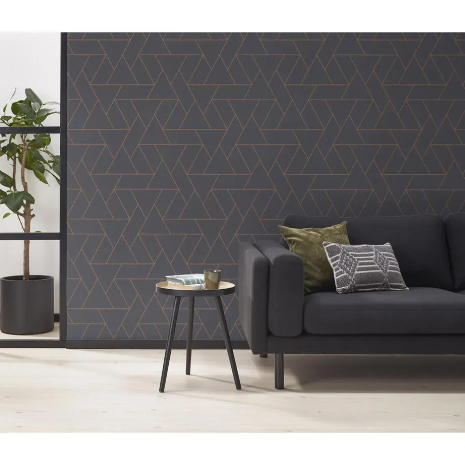 Behang vergrijsd antraciet met grafische print. Normaal afwasbaar. Voorzien van het FSC keurmerk. 10 meter per rol.