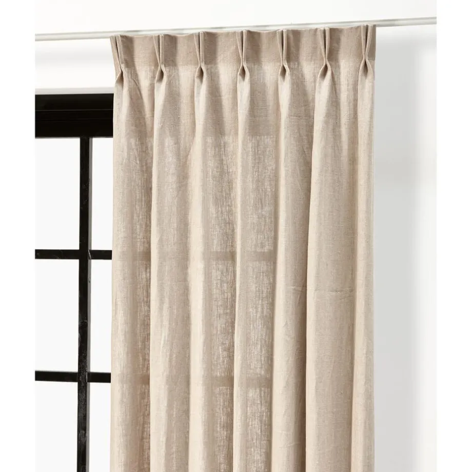 Gordijn naturel van 100% linnen. Pluisvrij, luchtig en sterk. 155 cm breed.