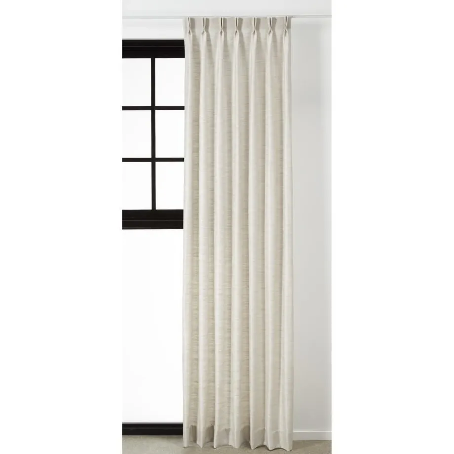 Soepelvallende zandkleurige gordijnstof. Vormvast en stevig. 138 cm breed.