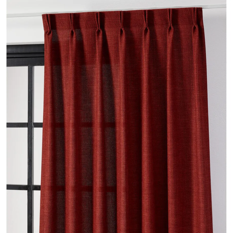 Gordijn Kai rood heeft een grove structuur, is sfeervol en is gemaakt van 100% polyester. Polyester is een synthetische vezel, waardoor deze behoorlijk slijtvast en makkelijk te onderhouden is. Hierdoor voldoet het aan het Oekotex keurmerk.