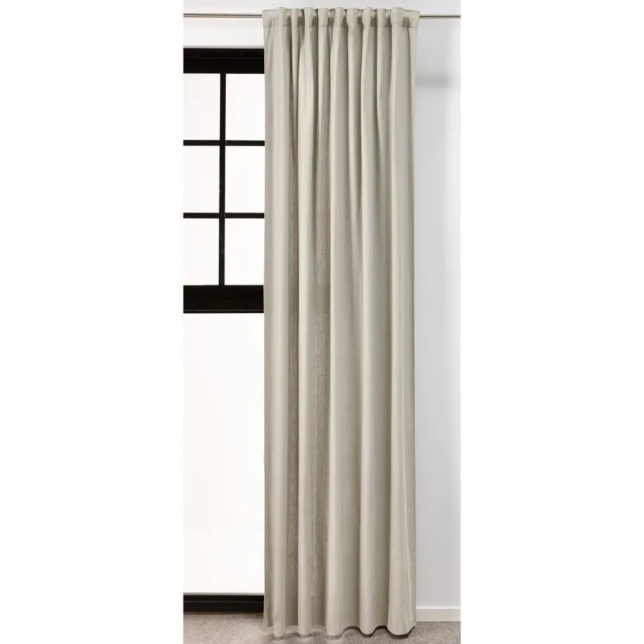 Kant en klaar gordijn met naturel kleur. Inclusief plooiband en lussen. Luchtig, vormvast en soepelvallend. Gemaakt van 100% gerecycled materiaal. 137×260 cm (bxh).