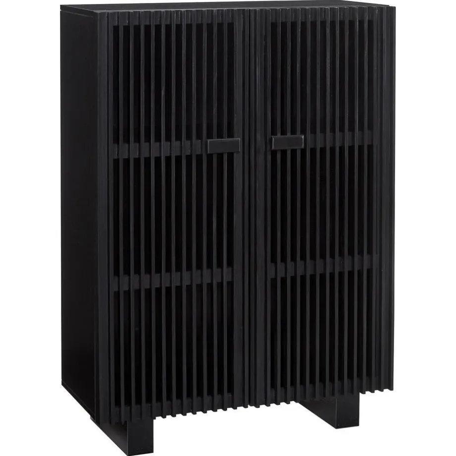 Kast Brindisi in een zwarte kleur. Deze kast is gemaakt van melamine en essenhout. 81,5x40x112,5 centimeter.